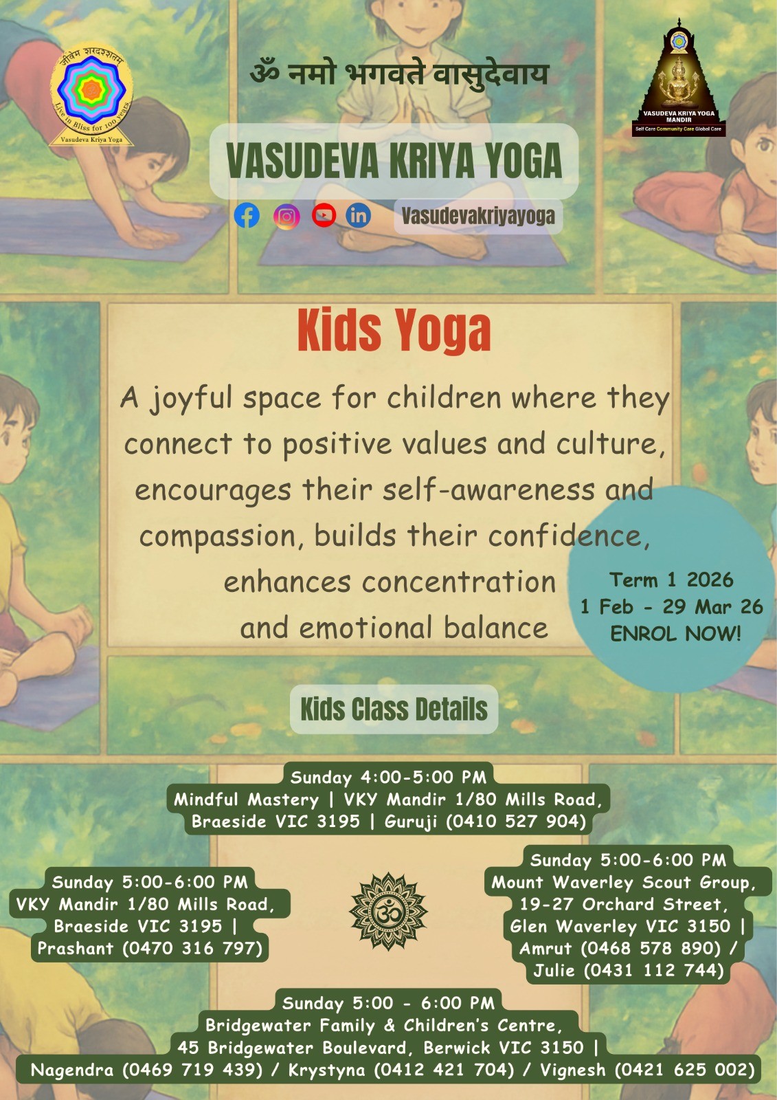 At Vasudeva Kriya Yoga, our dedicated instructors create a nurturing and joyful environment where kids can flourish. Through engaging stories, games, and interactive poses, we bring the magic of yoga to life, making each class an adventure that sparks their curiosity and ignites their spirits.